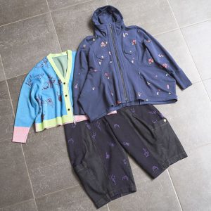 ️▶︎モンスターをジャガードにしたショート丈のカーデは遊び心が爆発。ボタンでもファスナーでもとめられる2WAYスタイルです。