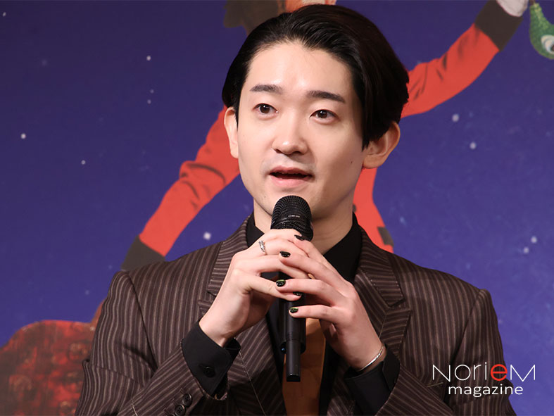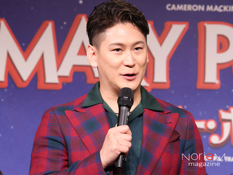 初演からバート役で参加している大貫さんは「今回は半分以上のキャストが新しくなるということで、初心に返り、新たな気持ちで、新しいものを作り上げていけたらなと思っています。楽しみにしていてください」と呼びかけました。見どころは、バートが逆さまで歌うシーン。「『Step in Time』という楽曲でタップをしながら壁を登って、逆さまで歌う景色はこの作品でしか観られない景色です。僕自身もエキサイティングで興奮します。また素晴らしい景色が見られると思うとワクワクしています」と笑顔を見せました。