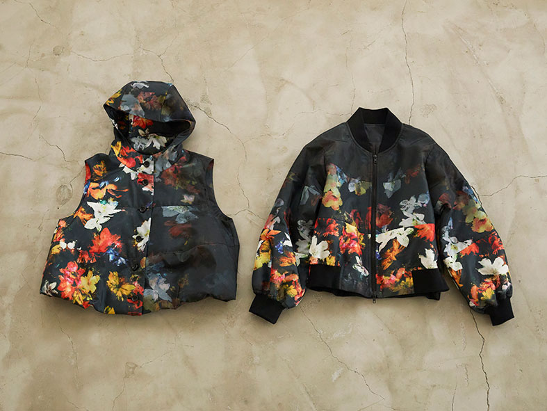 グラデーションプリントが華やかな気分を盛りあげる、「慈雨」の花柄アウターは春を予感させる1枚。
