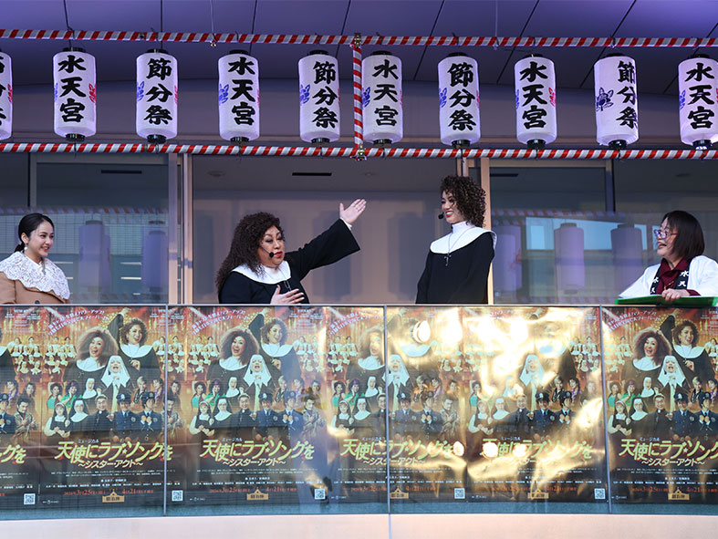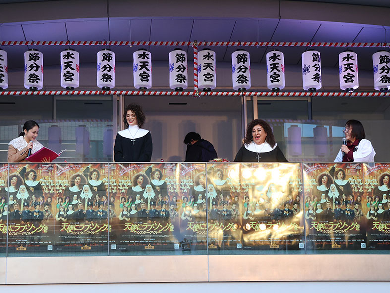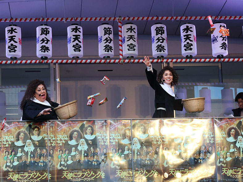 ミュージカル『天使にラブ・ソングを~シアター・アクト~』水天宮節分祭 囲み取材が2026年2月3日(火)に東京都中央区の水天宮で行われ、森公美子さんと彩風咲奈さんが豆まきイベントに登場しました!!