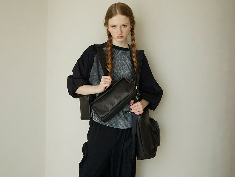 レザーを使ったバッグシリーズが新たに登場。ピッグスキンを使っていて柔らかくて軽いので、使い勝手も抜群。おしゃれをした時はもちろん、カジュアルにもぴったりなシリーズです!!